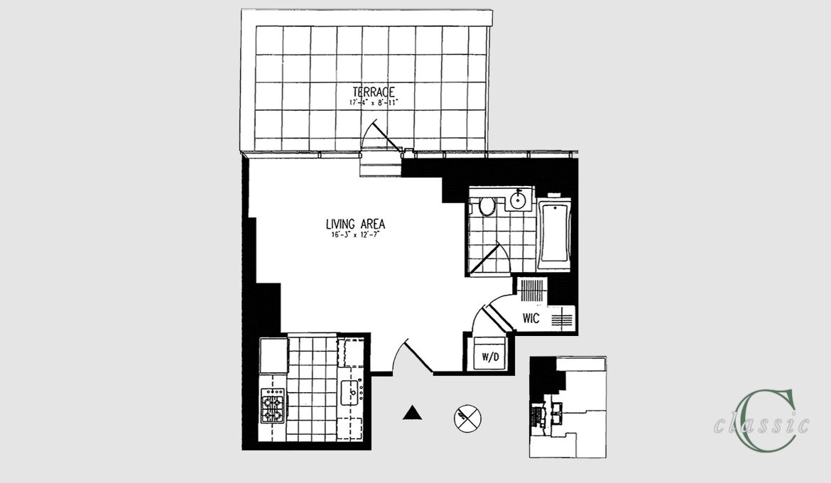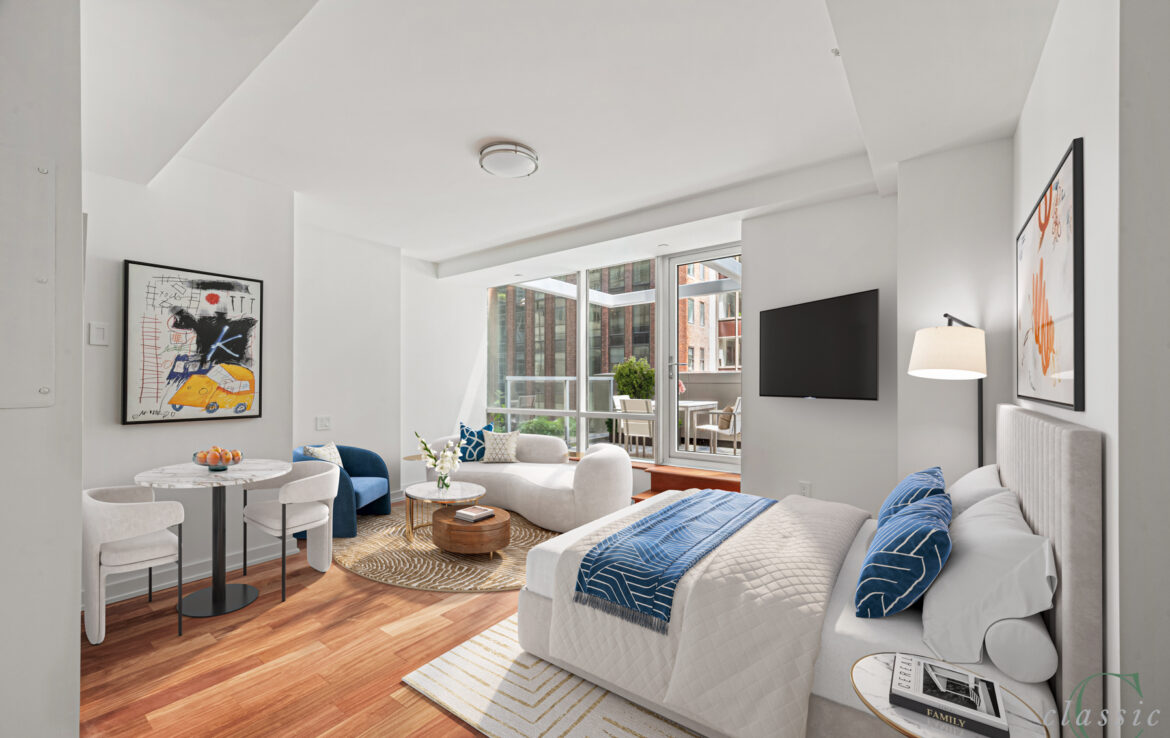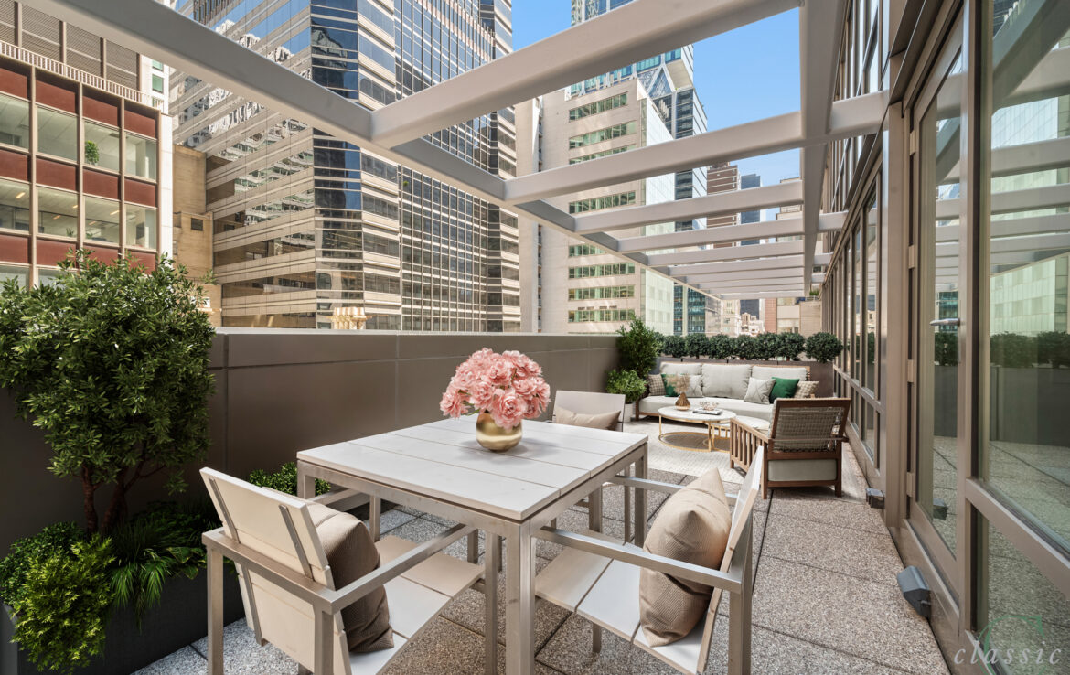 Amazing Terraced Studio now available on the 12th Floor at 60 East 55th Street.  Floor to ceiling windows provide wonderful light from this delightful residence. This studio has a full-sized kitchen featuring granite floors and counters, Sub Zero refrigerator, Miele cook top & oven, dishwasher and wine cooler.  The unit has beautiful Brazilian Cherry hardwood floors. Enjoy the view of the extra-large North facing terrace from all windows.  There is a spacious walk-in closet and a washer/dryer in unit for your convenience.